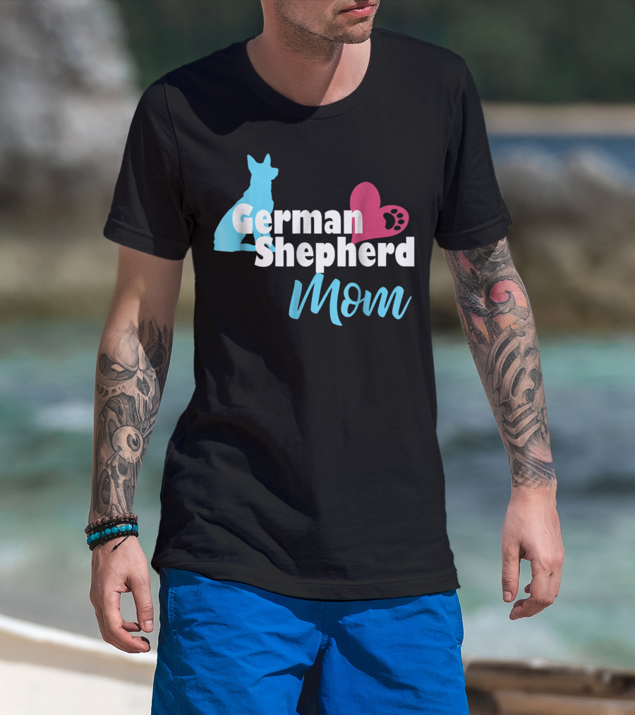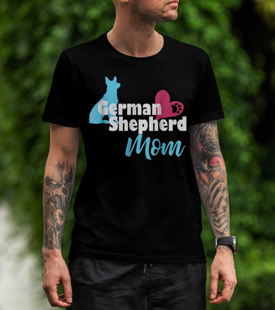 The German Shepherd Mom Heart Paw T-shirt is designed for everyday wear and a consistent fit. Fabric is pre-shrunk ring-spun cotton with durable stitching. See the size chart below for exact measurements.