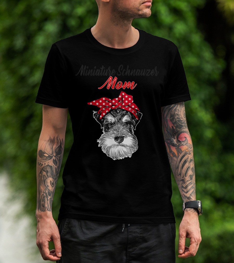 Miniature Schnauzer Mom Red Polka Dot Bow T-Shirt