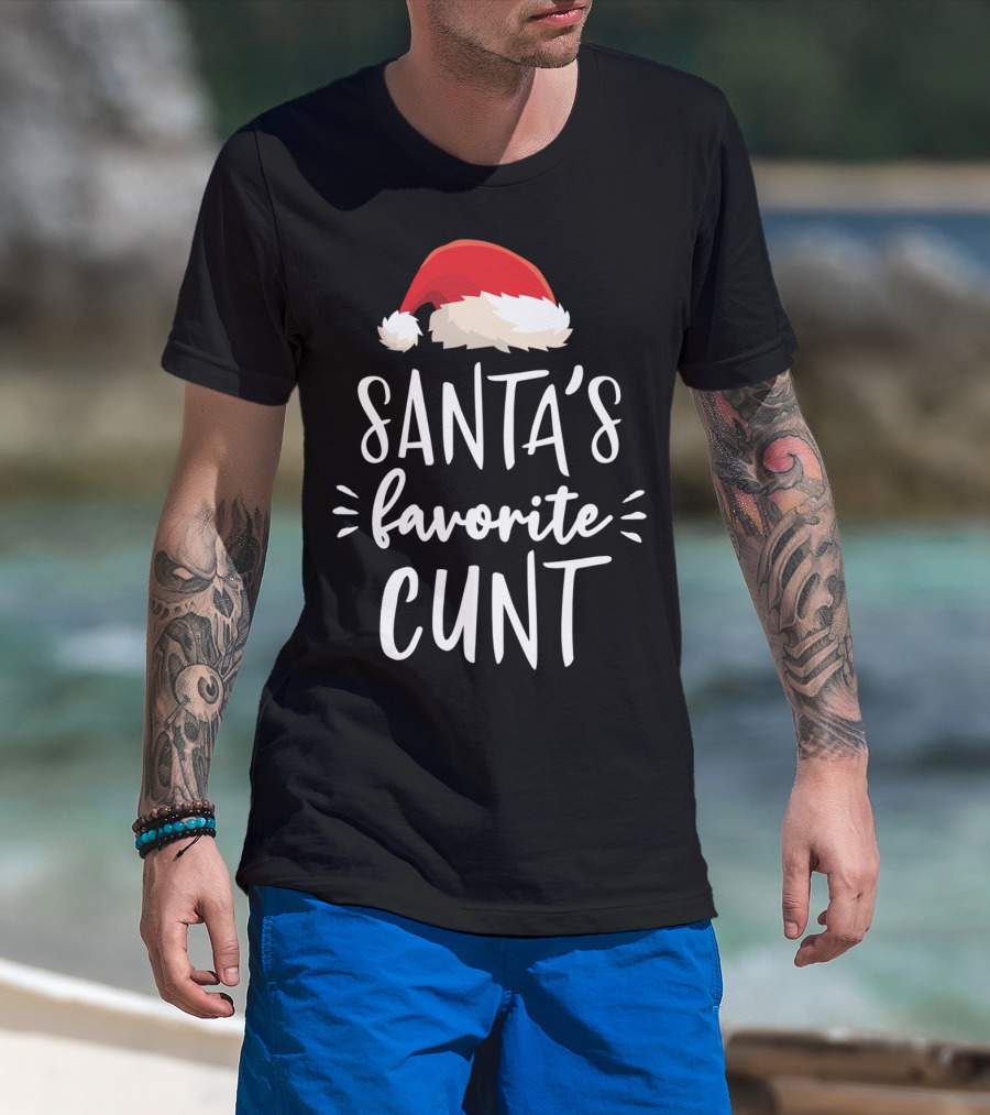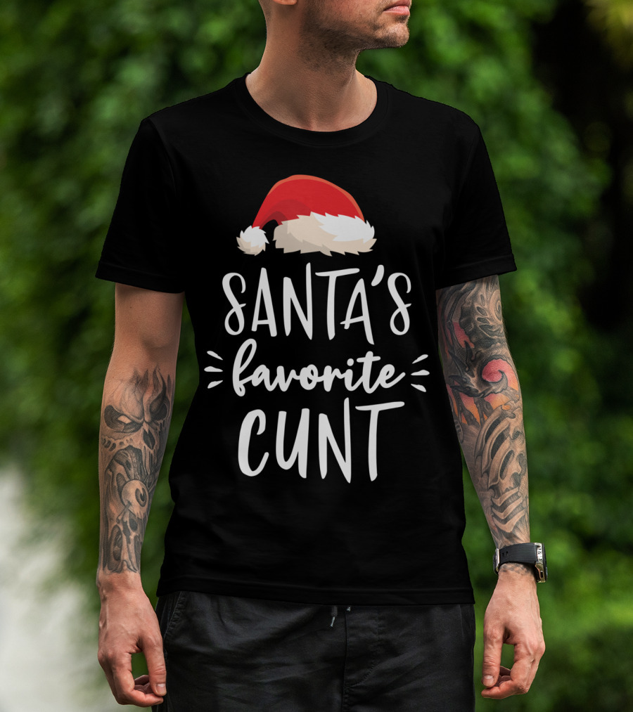 The Santa's Favorite Cunt T-shirt is designed for everyday wear and a consistent fit. Fabric is pre-shrunk ring-spun cotton with durable stitching. See the size chart below for exact measurements.