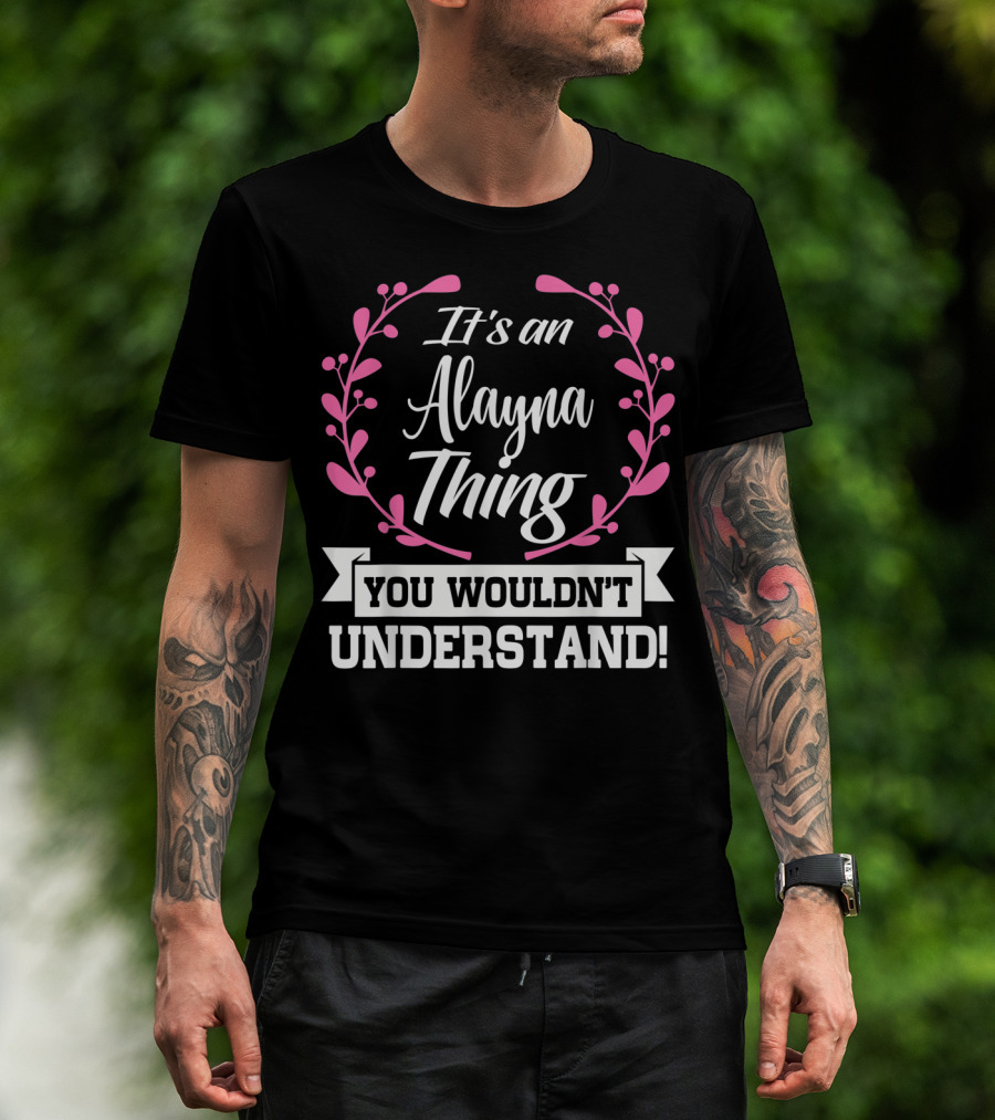 The It's an Alayna Thing You Wouldn't Understand T-shirt is designed for everyday wear and a consistent fit. Fabric is pre-shrunk ring-spun cotton with durable stitching. See the size chart below for exact measurements.
