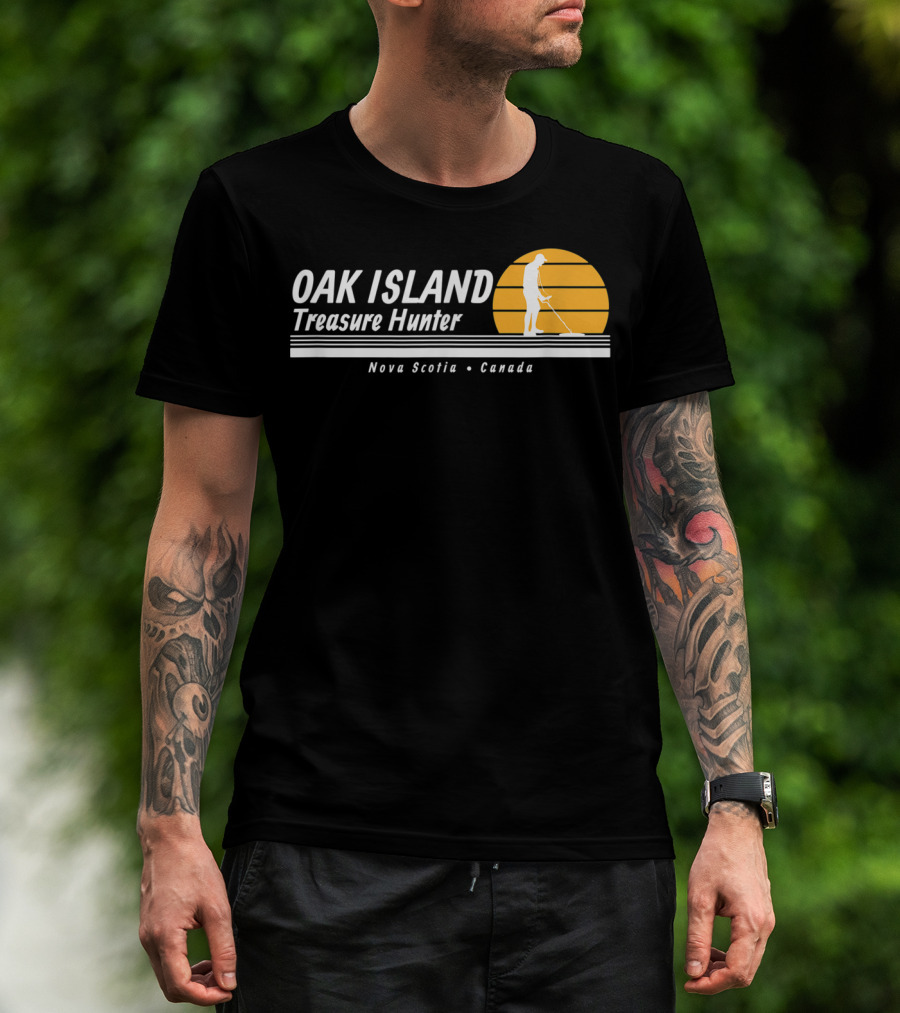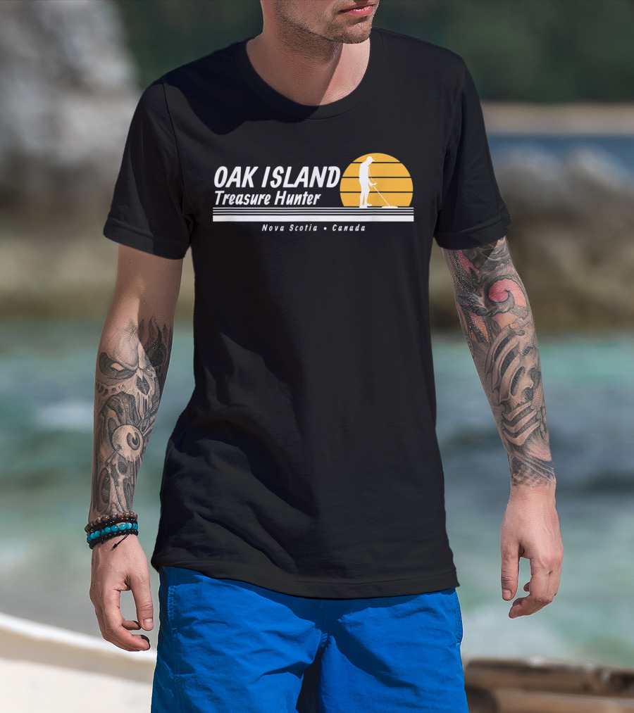 The Oak Island Treasure Hunter Nova Scotia Canada Metal Detector Sunset T-shirt is designed for everyday wear and a consistent fit. Fabric is pre-shrunk ring-spun cotton with durable stitching. See the size chart below for exact measurements.
