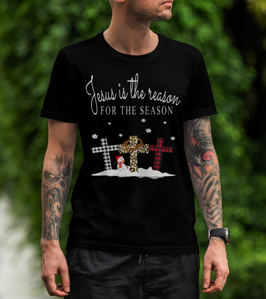 Jesus Is The Reason For The Season Crosses Plaid Leopard Snowman Snowflakes T-Shirt