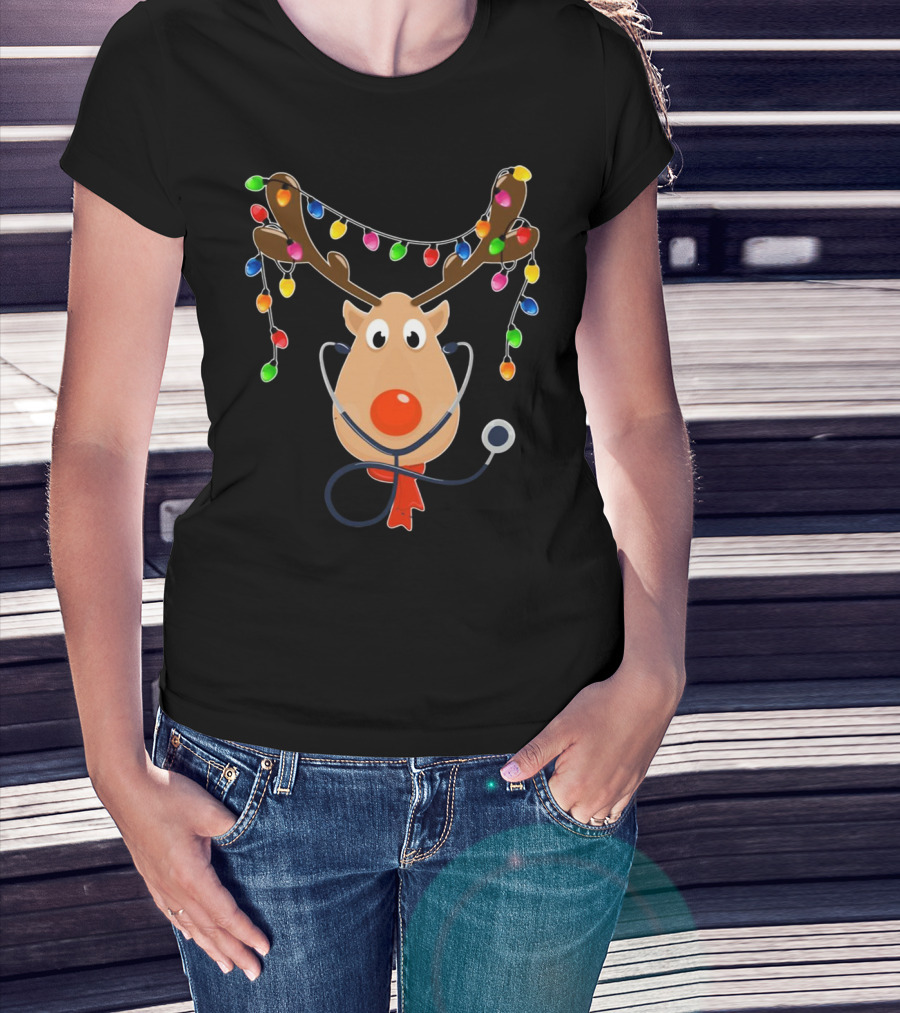 Reindeer Stethoscope Christmas Lights T-Shirt