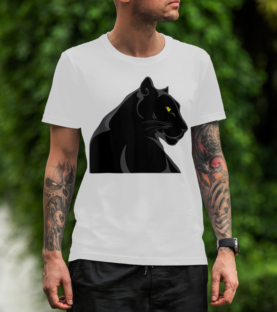 The Panthera Cat Leopard Melanistic Black Panther Yellow Eyes T-shirt is designed for everyday wear and a consistent fit. Fabric is pre-shrunk ring-spun cotton with durable stitching. See the size chart below for exact measurements.