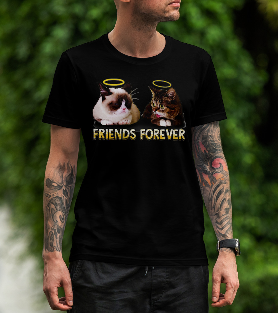 The Grumpy Lil Bub Friends Forever T-shirt is designed for everyday wear and a consistent fit. Fabric is pre-shrunk ring-spun cotton with durable stitching. See the size chart below for exact measurements.