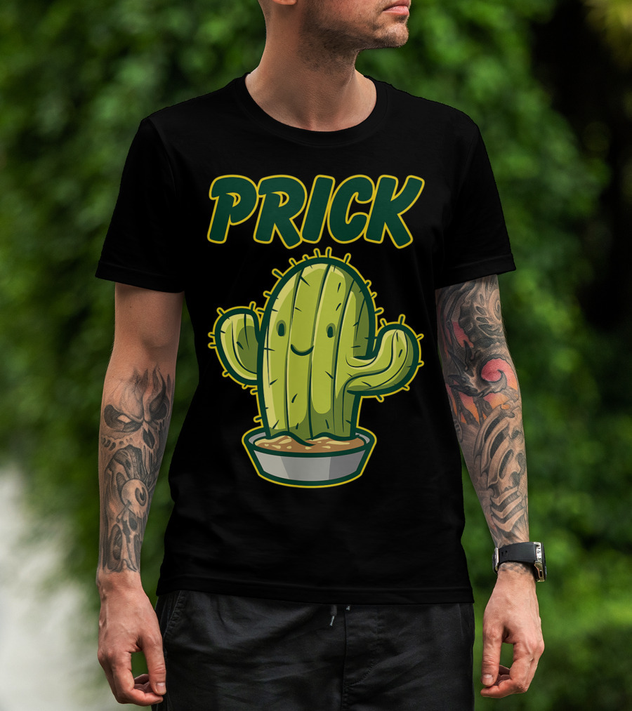 The Prick Happy Smiley Cactus Epic Gag T-shirt is designed for everyday wear and a consistent fit. Fabric is pre-shrunk ring-spun cotton with durable stitching. See the size chart below for exact measurements.
