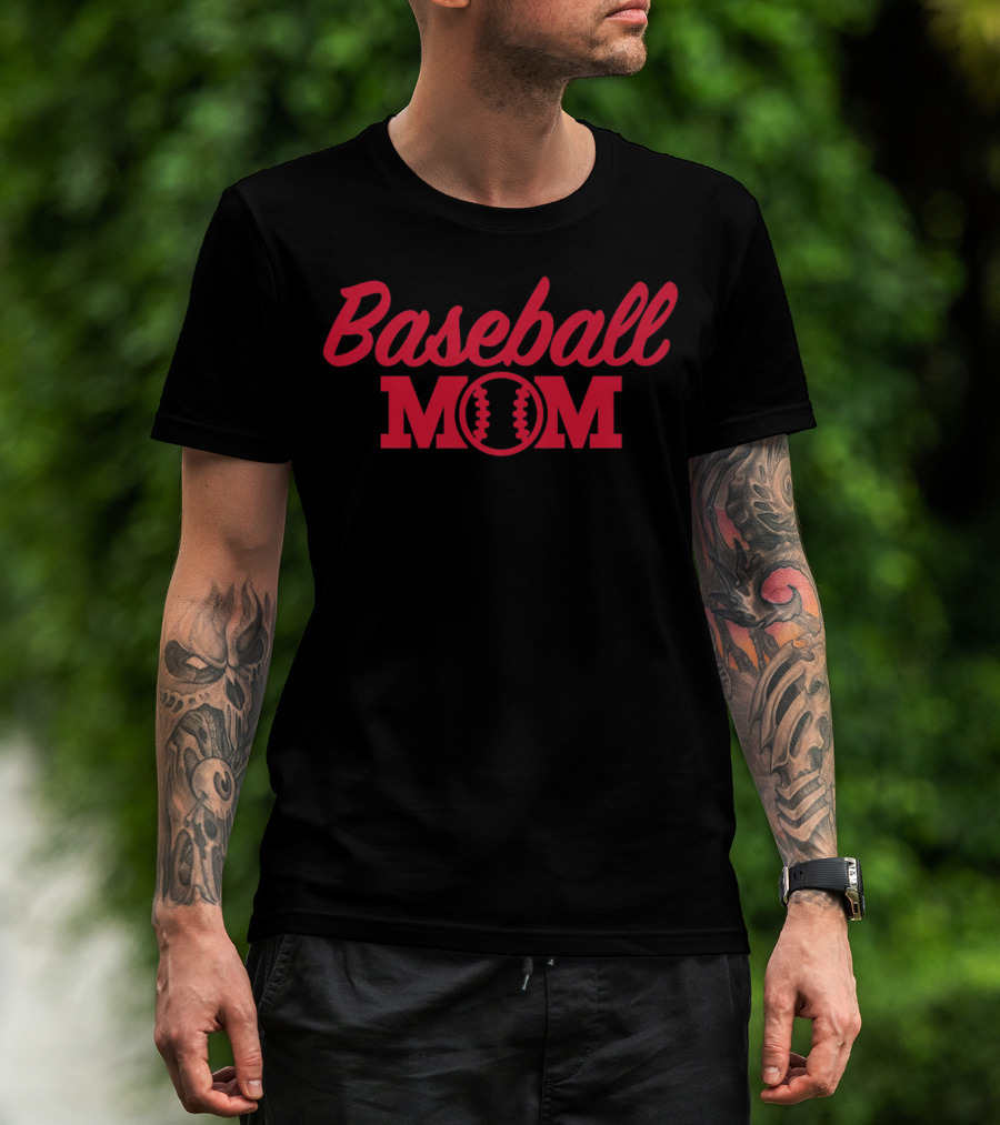 Baseball Mom Fitted Graphic With Red Text And Baseball Stitching T-Shirt