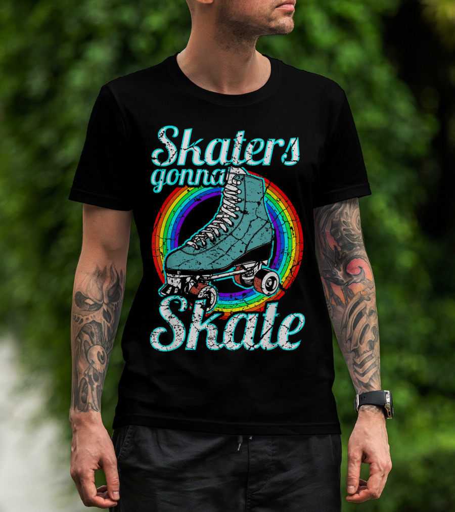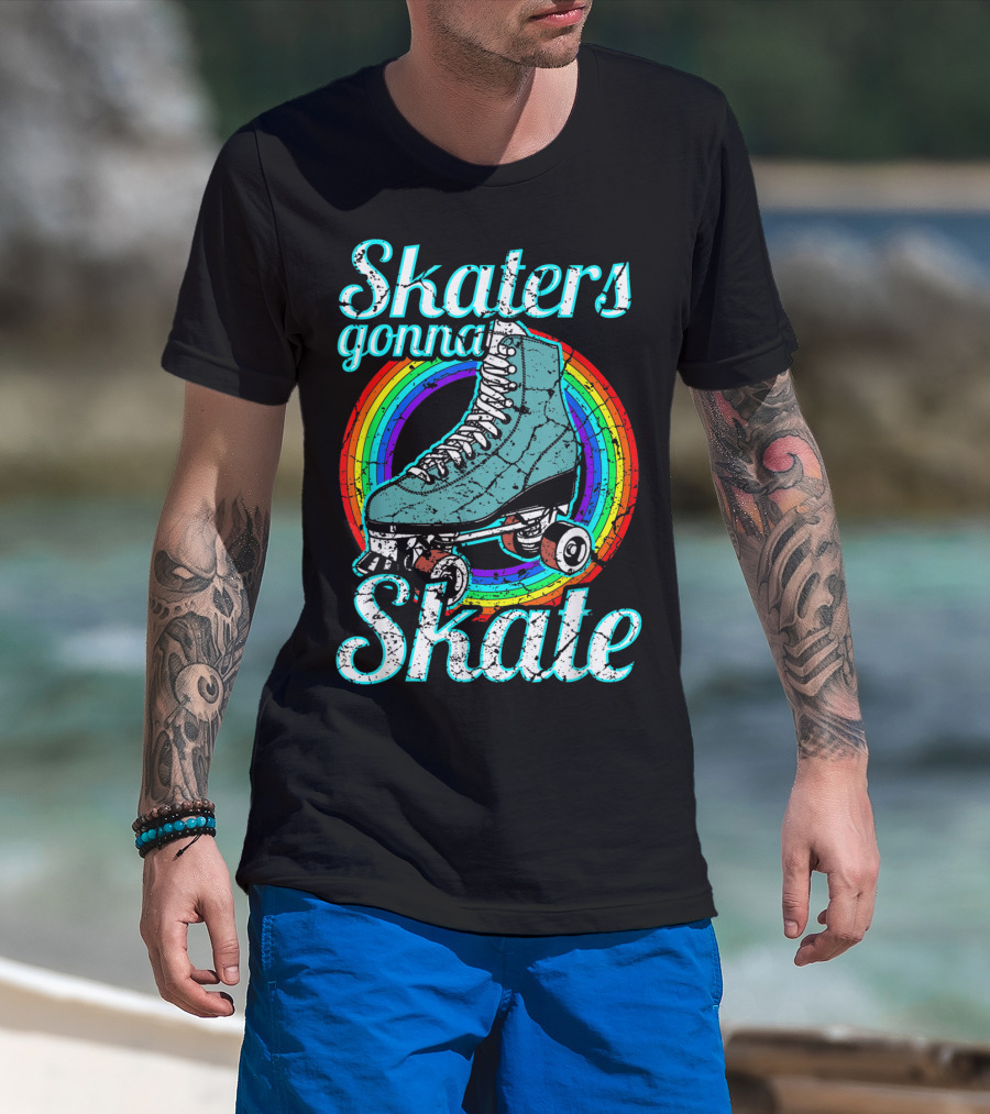 Retro Skaters Gonna Skate Roller Skate Vintage Style Rainbow T-Shirt