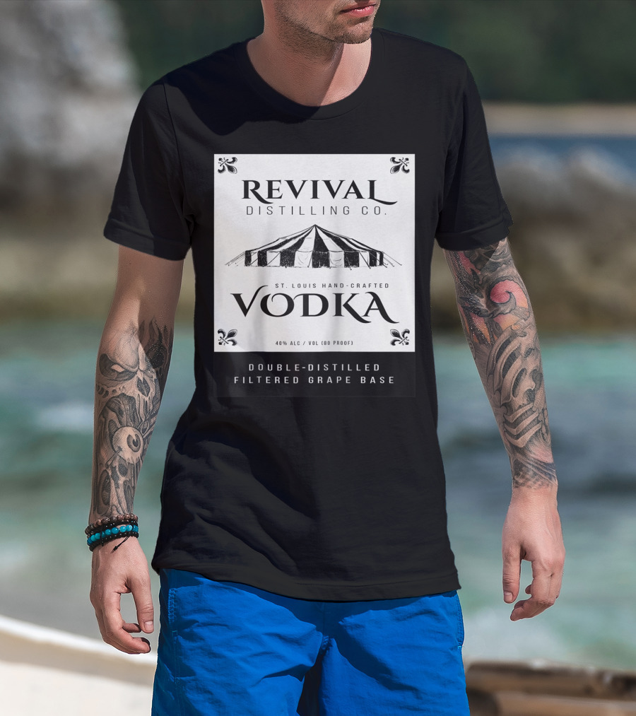 Revival Distilling Co. St. Louis Hand-Crafted Vodka Double-Distilled Filtered Grape Base T-Shirt