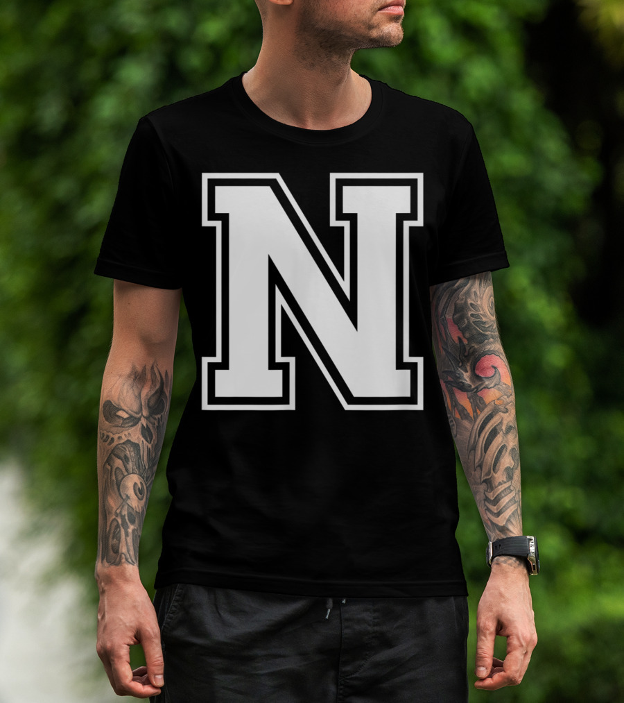 The N Letter Initial Old School T-shirt is designed for everyday wear and a consistent fit. Fabric is pre-shrunk ring-spun cotton with durable stitching. See the size chart below for exact measurements.