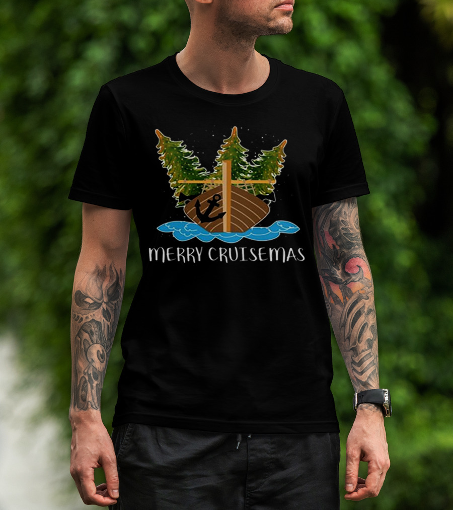 Merry Cruisemas Christmas Cruise Ship With Anchor And Festive Trees T-Shirt