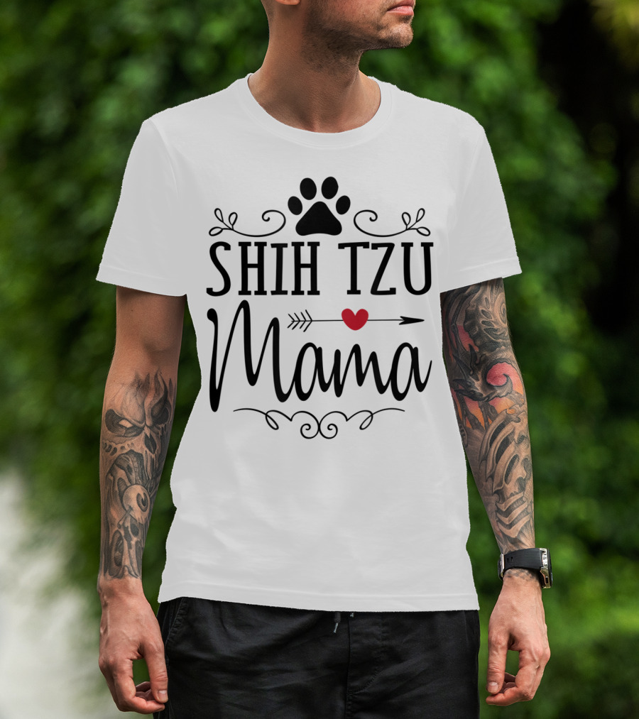 Shih Tzu Mama Heart Arrow Paw Prints T-Shirt
