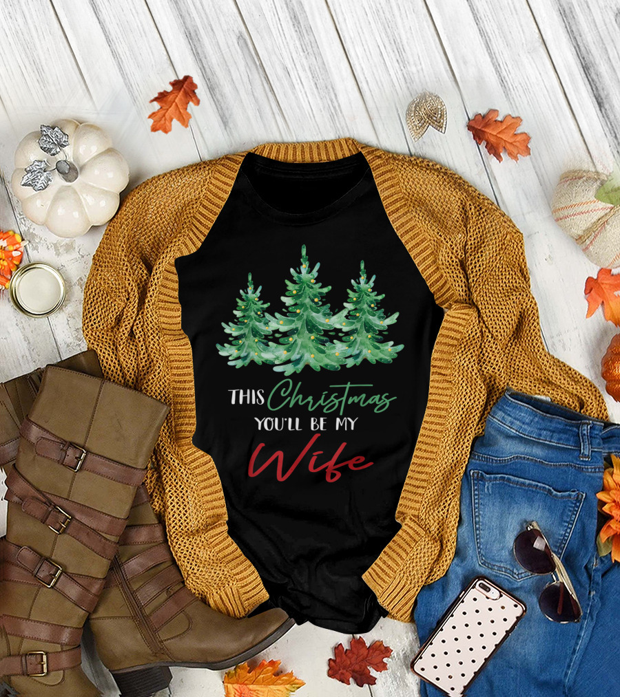 Mens This Christmas You'll Be My Wife Christmas Trees T-Shirt