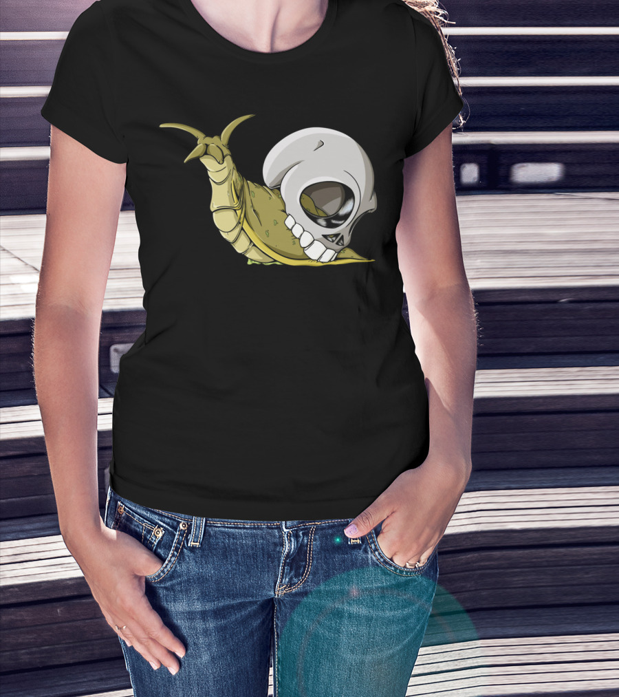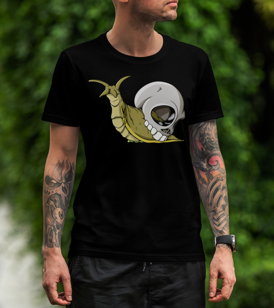 Skullug Funny Mix Skull With Slug Shell T-Shirt