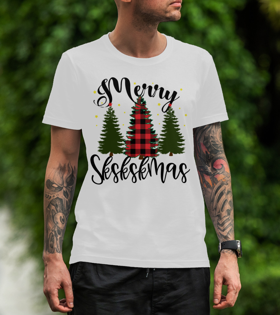 Merry Skskskmas Plaid Trees Scrunchie Visco Holiday T-Shirt