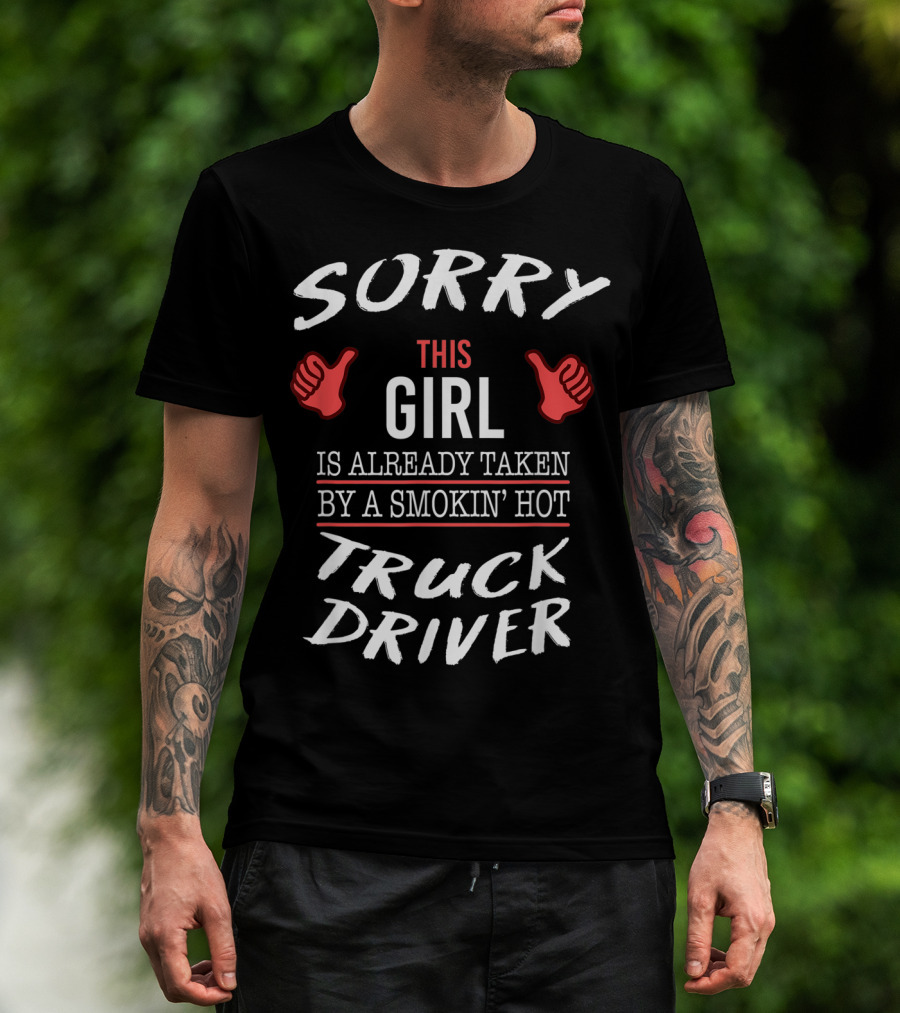 The SORRY THIS GIRL IS ALREADY TAKEN BY A SMOKIN' HOT TRUCK DRIVER T-shirt is designed for everyday wear and a consistent fit. Fabric is pre-shrunk ring-spun cotton with durable stitching. See the size chart below for exact measurements.