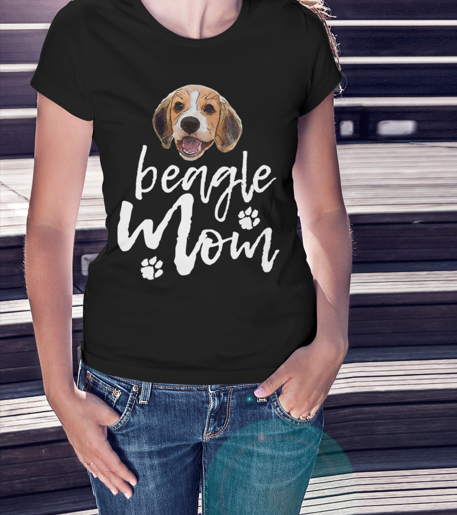 Beagle Mom Cute Dog Face Paw Prints T-Shirt