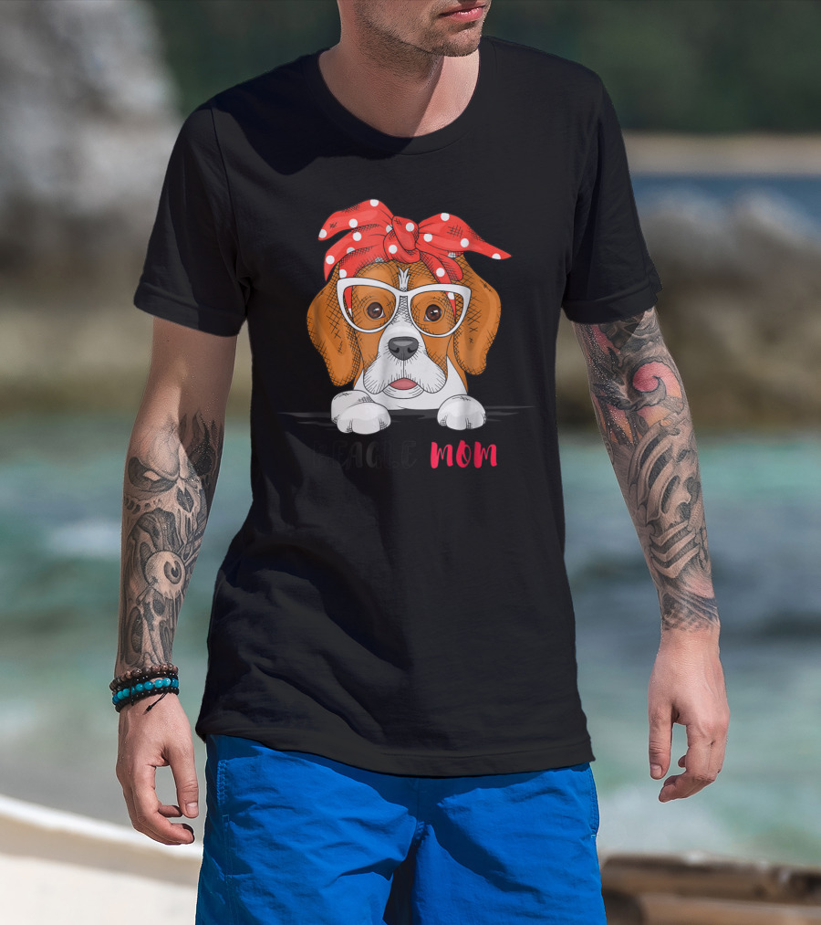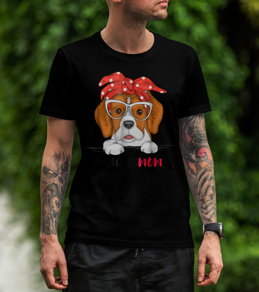 Beagle Mom With Glasses And Red Bow T-Shirt