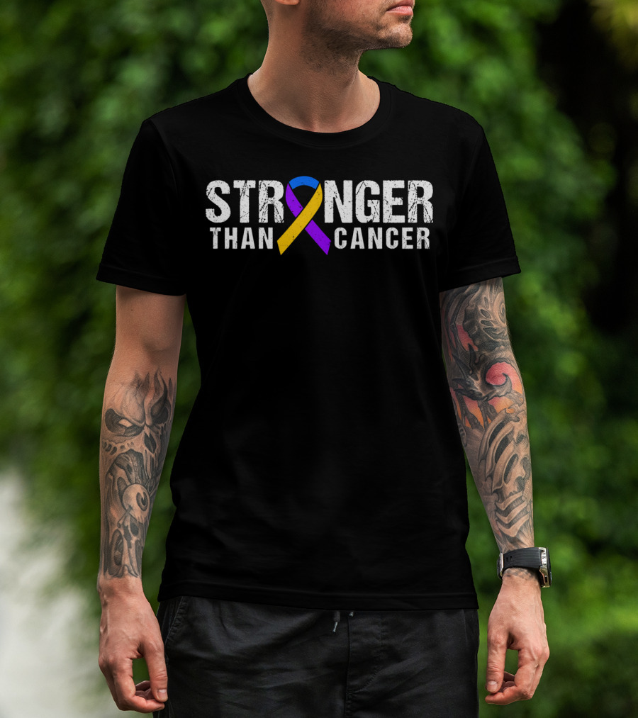 STRONGER THAN CANCER Purple Yellow Ribbon Bladder Cancer Awareness T-Shirt