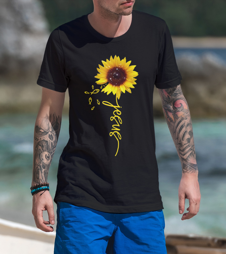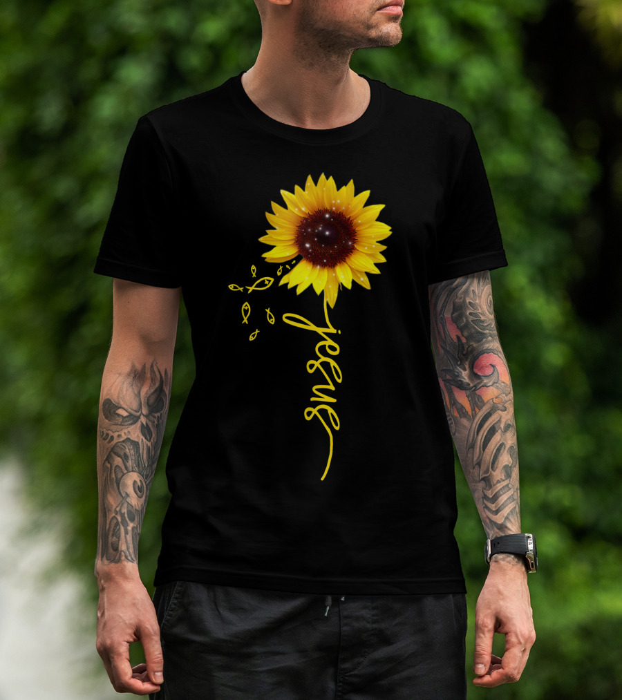 Sunflower Jesus Christian Faith Cross With Ichthys Symbols T-Shirt