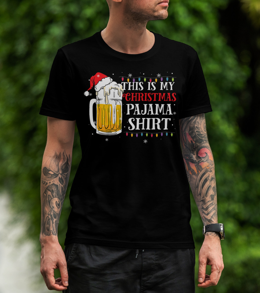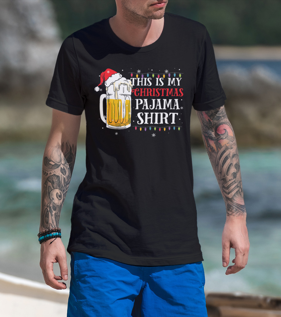 This Is My Christmas Pajama Shirt Beer Santa Hat T-Shirt