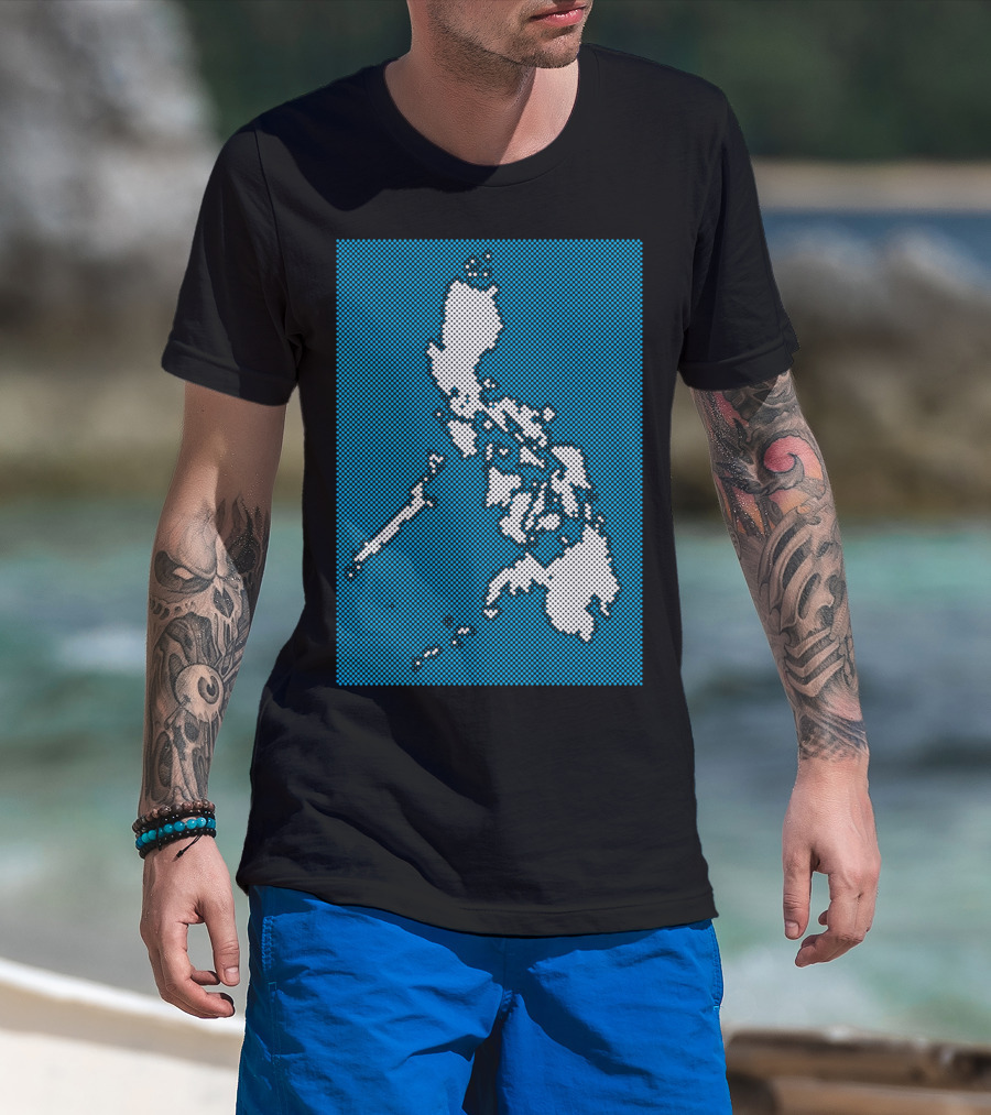 The Philippines Map Halftone Blue Background T-shirt is designed for everyday wear and a consistent fit. Fabric is pre-shrunk ring-spun cotton with durable stitching. See the size chart below for exact measurements.