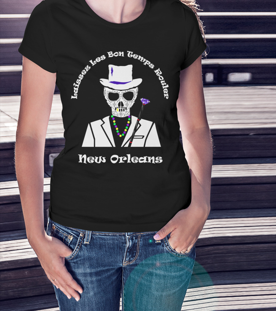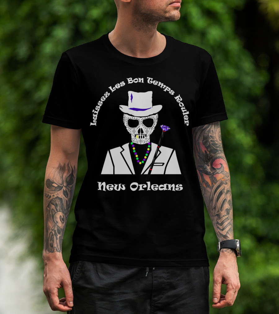 Laissez Les Bon Temps Rouler New Orleans Baron Samedi Skull Cane Beads T-Shirt