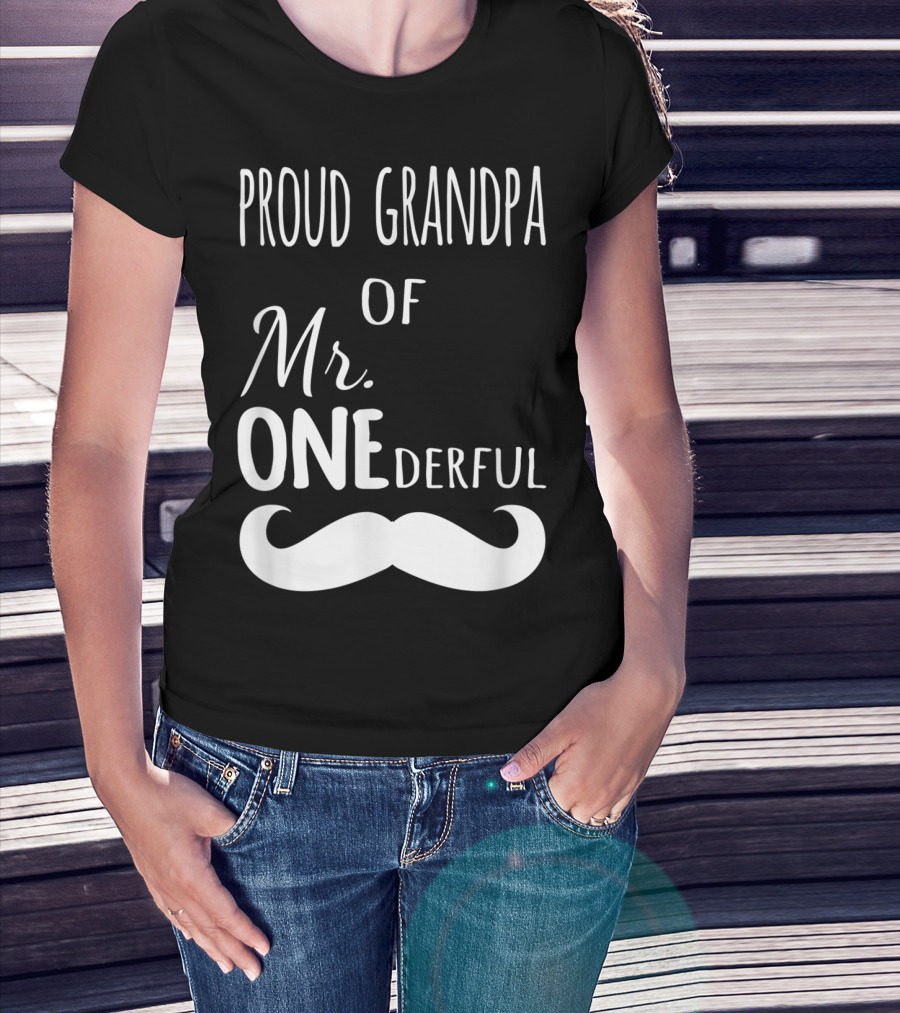 Proud Grandpa Of Mr Onederful Mustache Celebratory Family T-Shirt