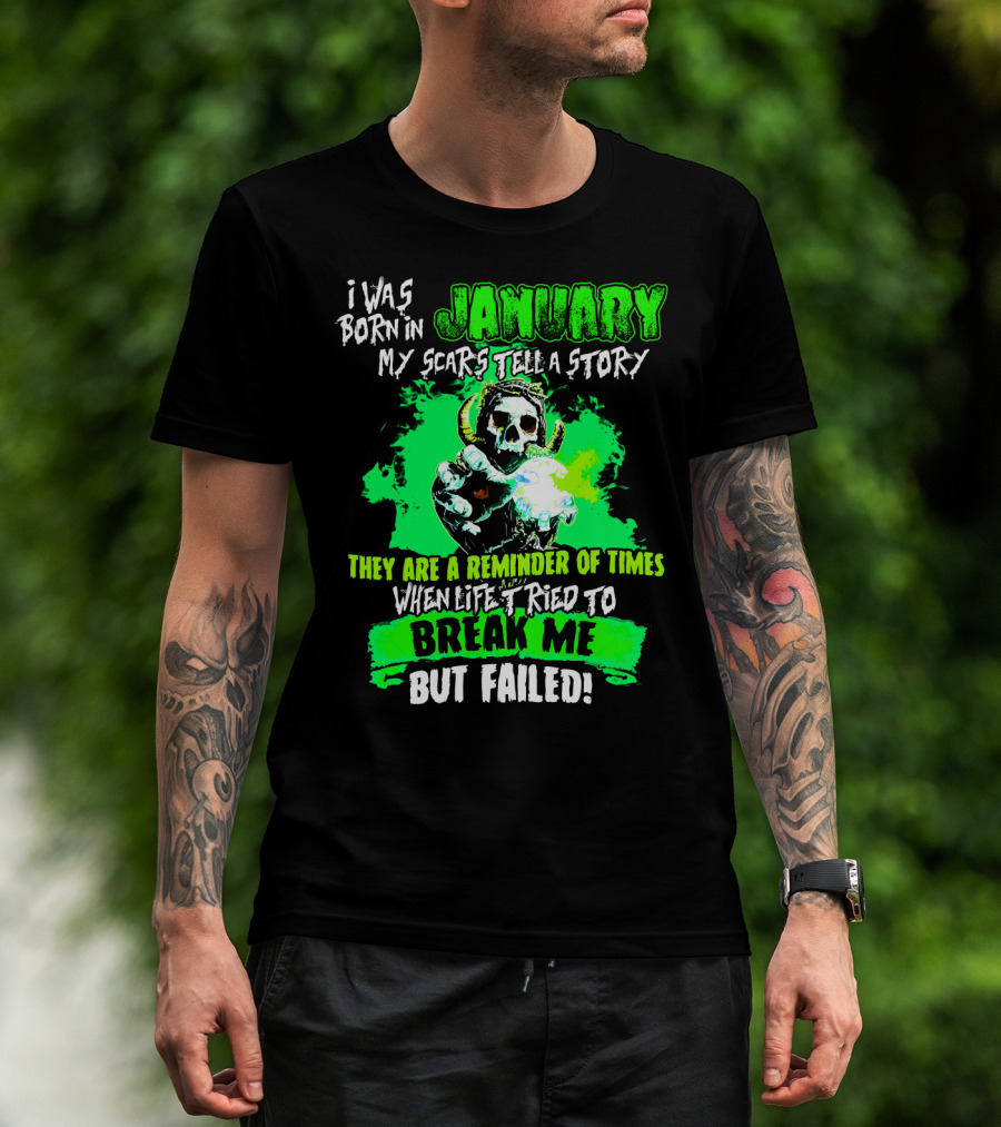I Was Born In January My Scars Tell A Story Reminder Of Times When Life Tried To Break Me But Failed T-Shirt