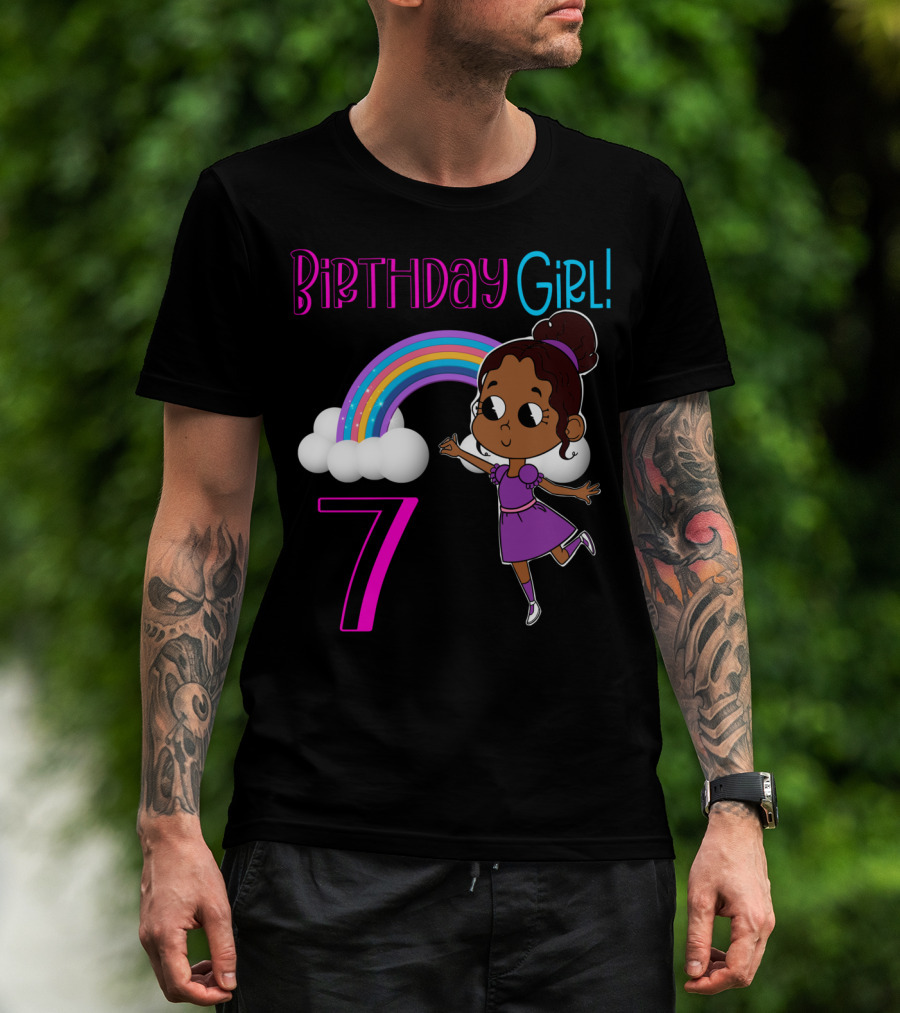 Birthday Girl 7 African American With Rainbow And Dancing Child T-Shirt