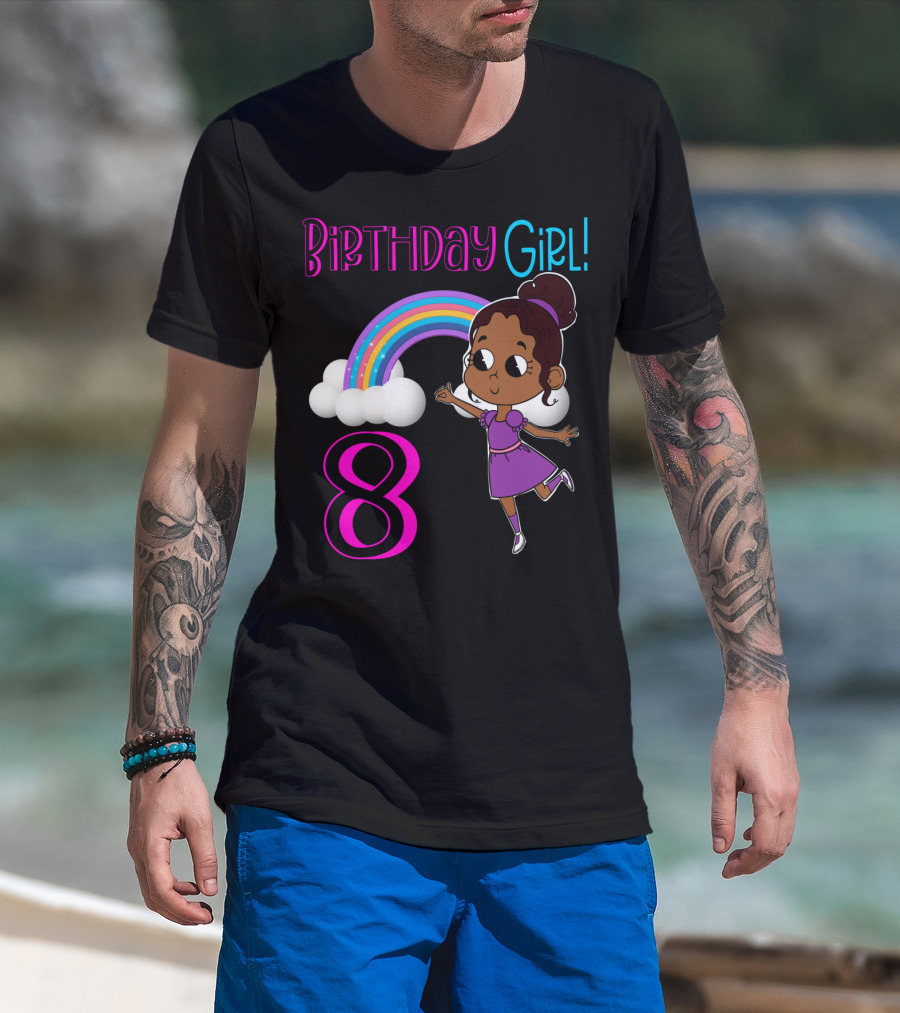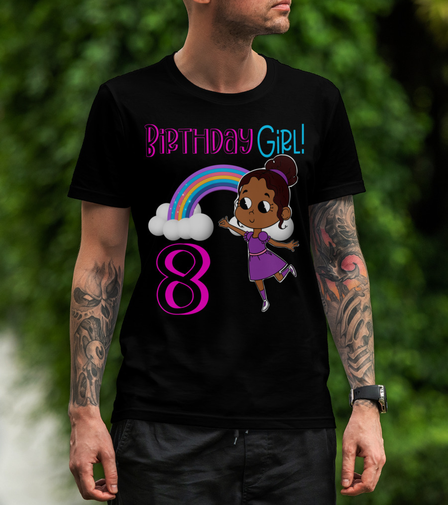 Birthday Girl 8 Rainbow Celebration With African American Cartoon Kid T-Shirt