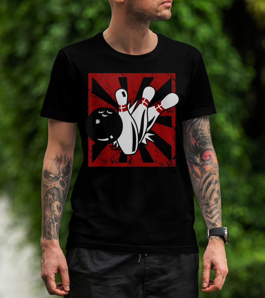 Retro Vintage Bowling Funny Striking Bowler Bowl Pins Explosion T-Shirt