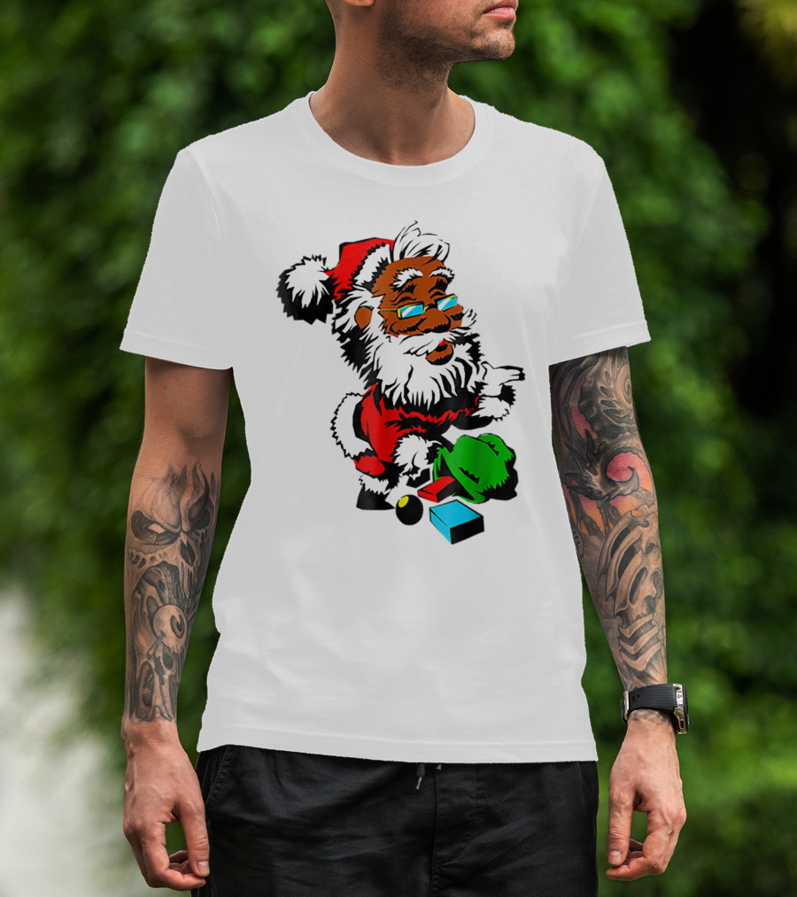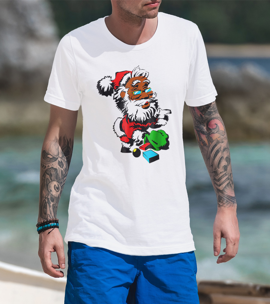 African American Santa Claus With Presents And Santa Hat T-Shirt
