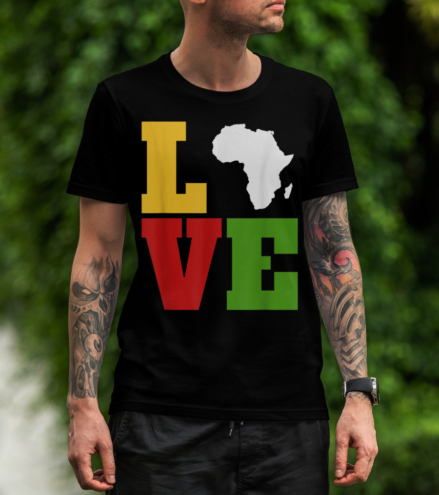 The LOVE Africa Afrocentric African T-shirt is designed for everyday wear and a consistent fit. Fabric is pre-shrunk ring-spun cotton with durable stitching. See the size chart below for exact measurements.