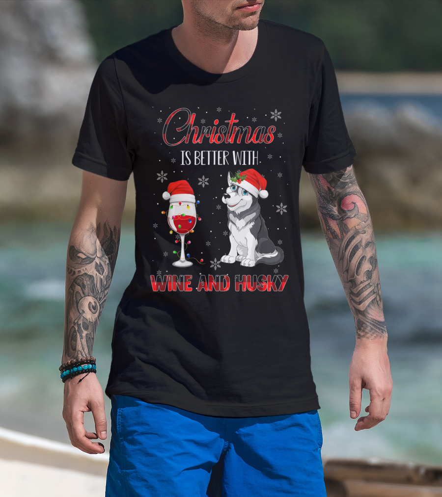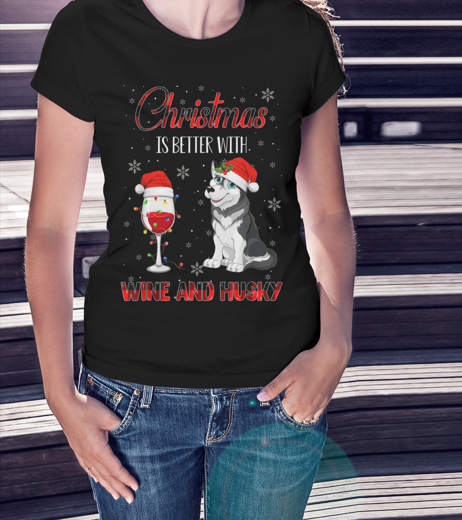 Christmas Is Better With Wine And Husky T-Shirt