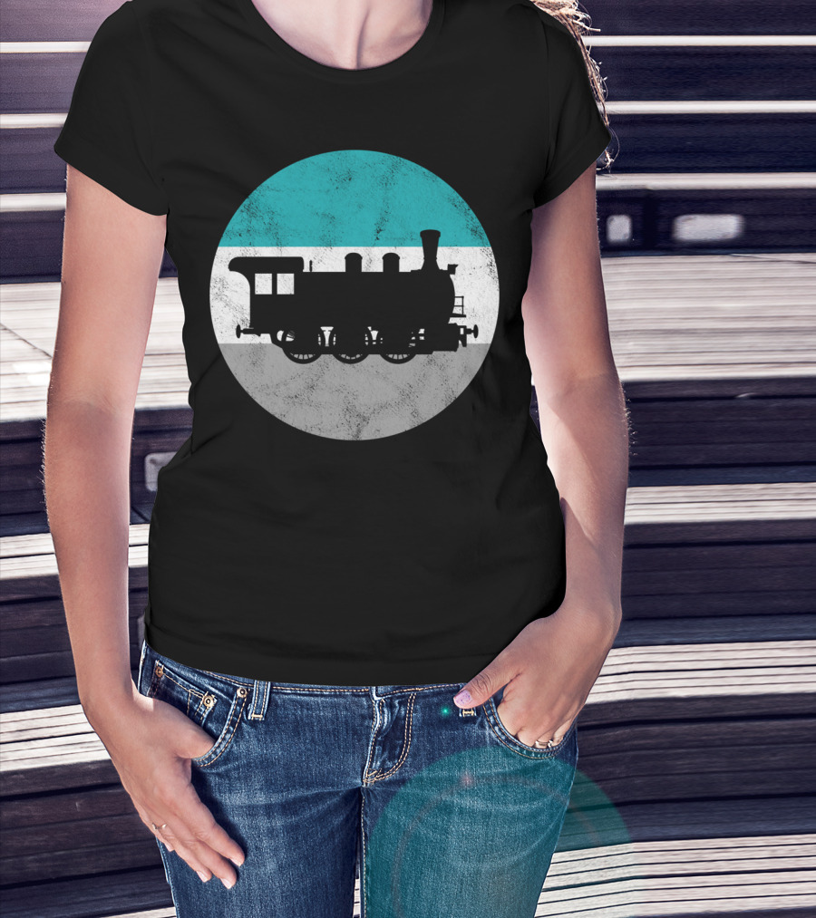 Vintage Steam Train Silhouette In Retro Circle T-Shirt