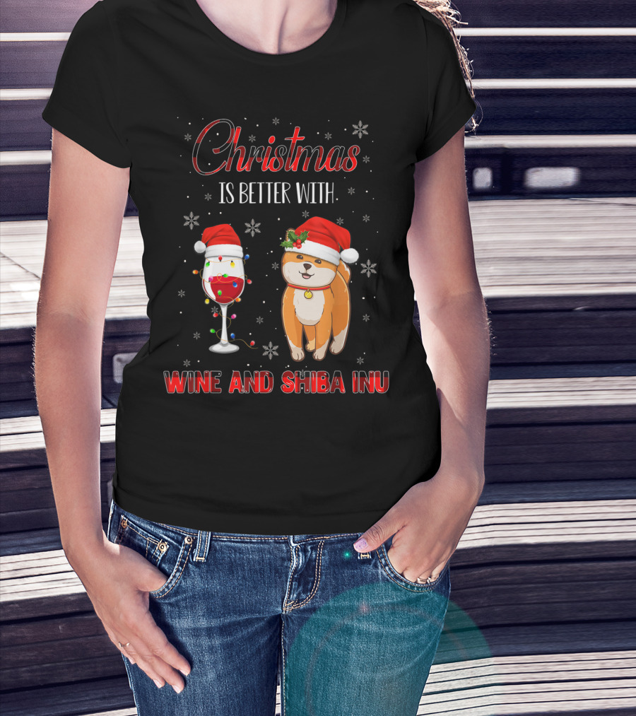 Christmas Is Better With Wine And Shiba Inu T-Shirt