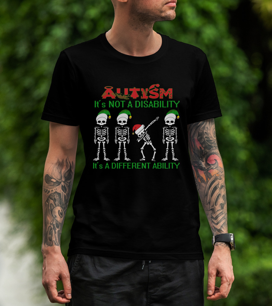 Autism Dabbing Skeleton Christmas It's Not A Disability It's A Different Ability T-Shirt