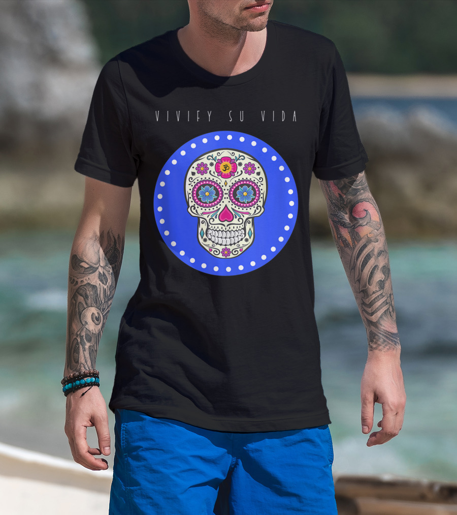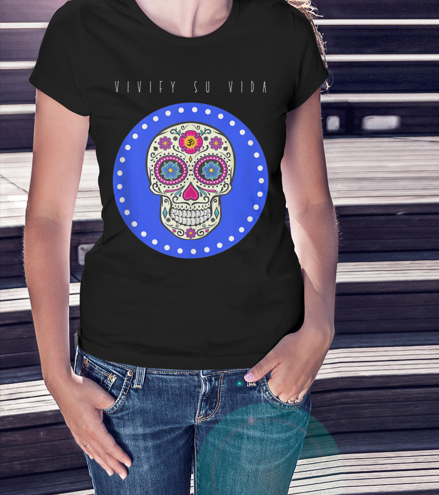 Vivify Su Vida Sugar Skull Blue Circle T-Shirt