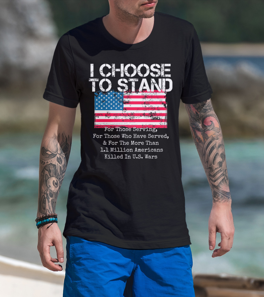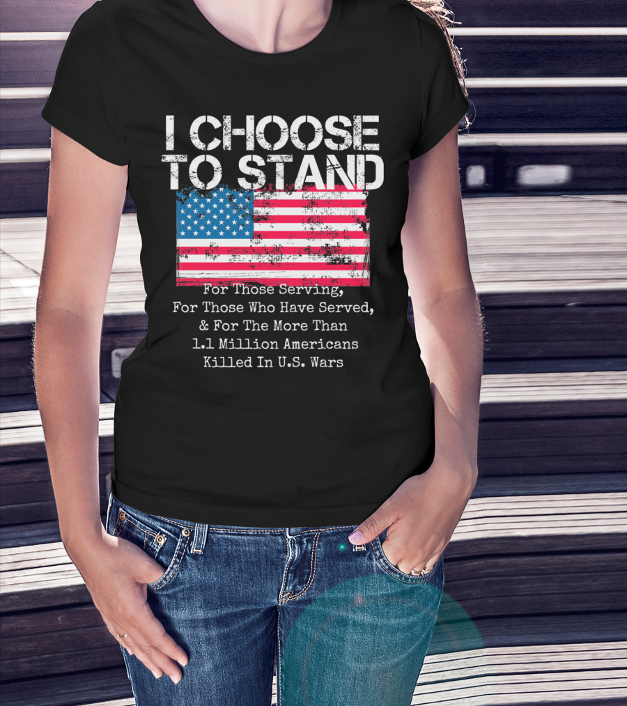 I Choose To Stand American Flag For Those Serving And 1.1 Million Americans Killed In U.S. Wars T-Shirt