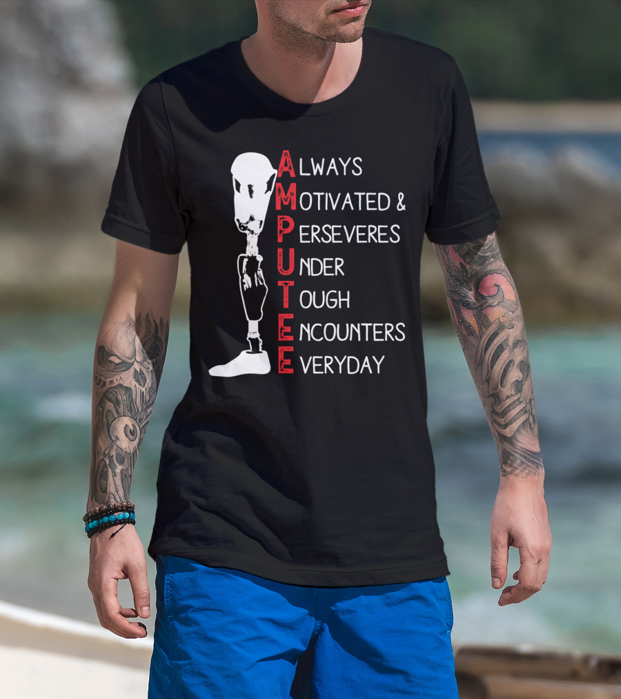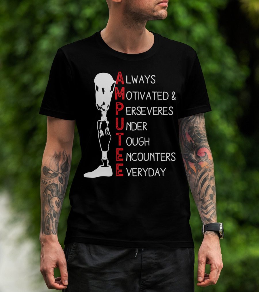 The Ampu Always Motivated Perseveres Under Tough Encounters Everyday T-shirt is designed for everyday wear and a consistent fit. Fabric is pre-shrunk ring-spun cotton with durable stitching. See the size chart below for exact measurements.