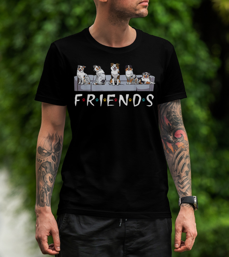 The FRIENDS Australian Shepherds on Couch T-shirt is designed for everyday wear and a consistent fit. Fabric is pre-shrunk ring-spun cotton with durable stitching. See the size chart below for exact measurements.