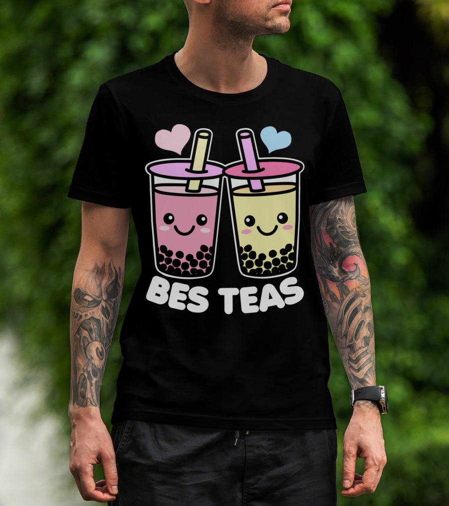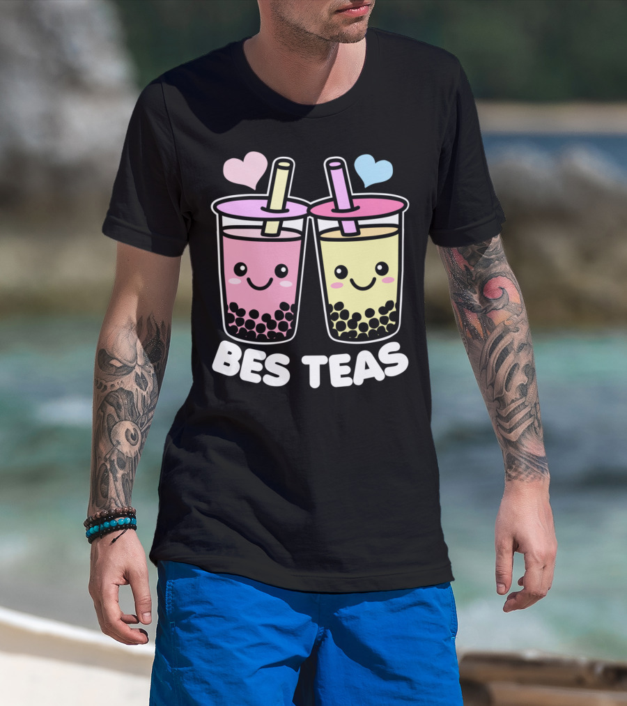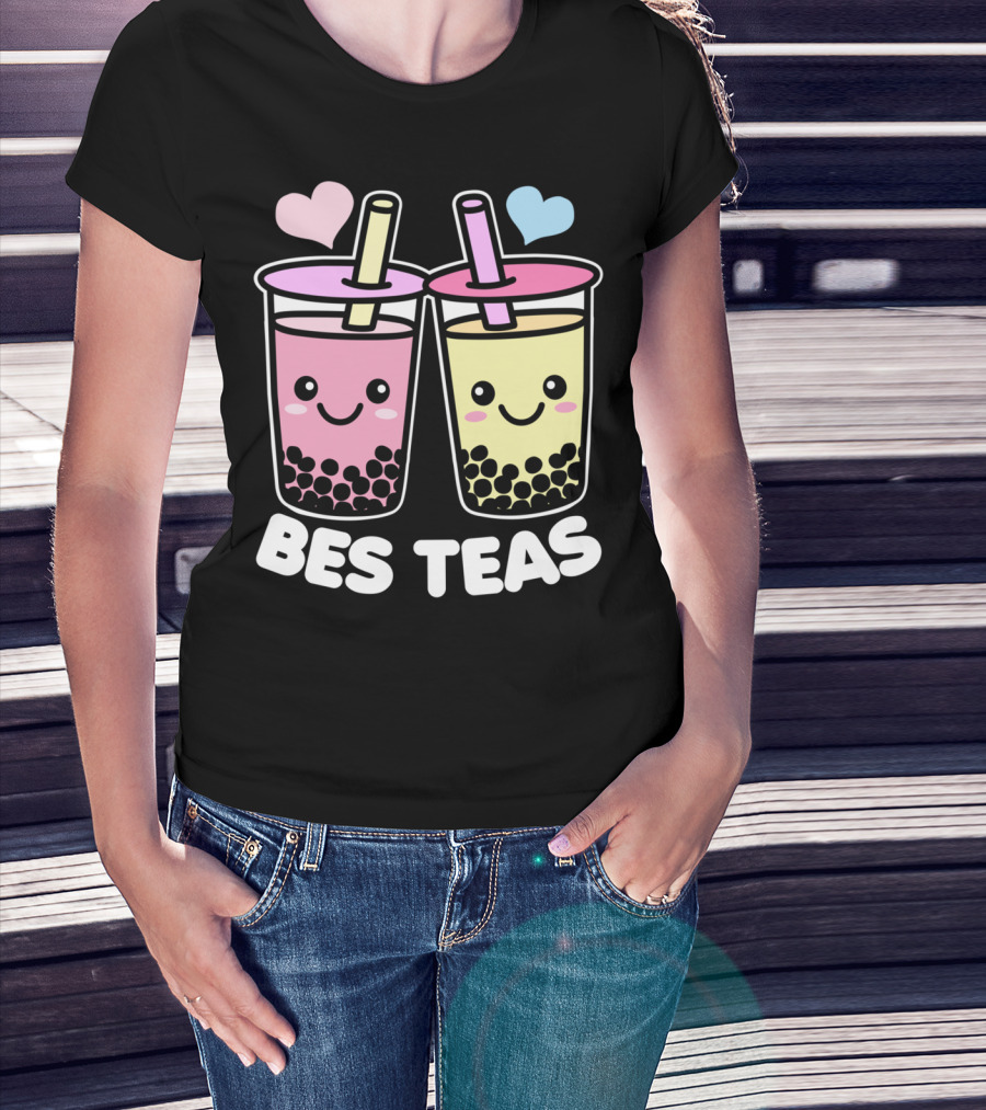 Bes Teas Cute Kawaii Boba Drinks Pink Yellow Hearts T-Shirt