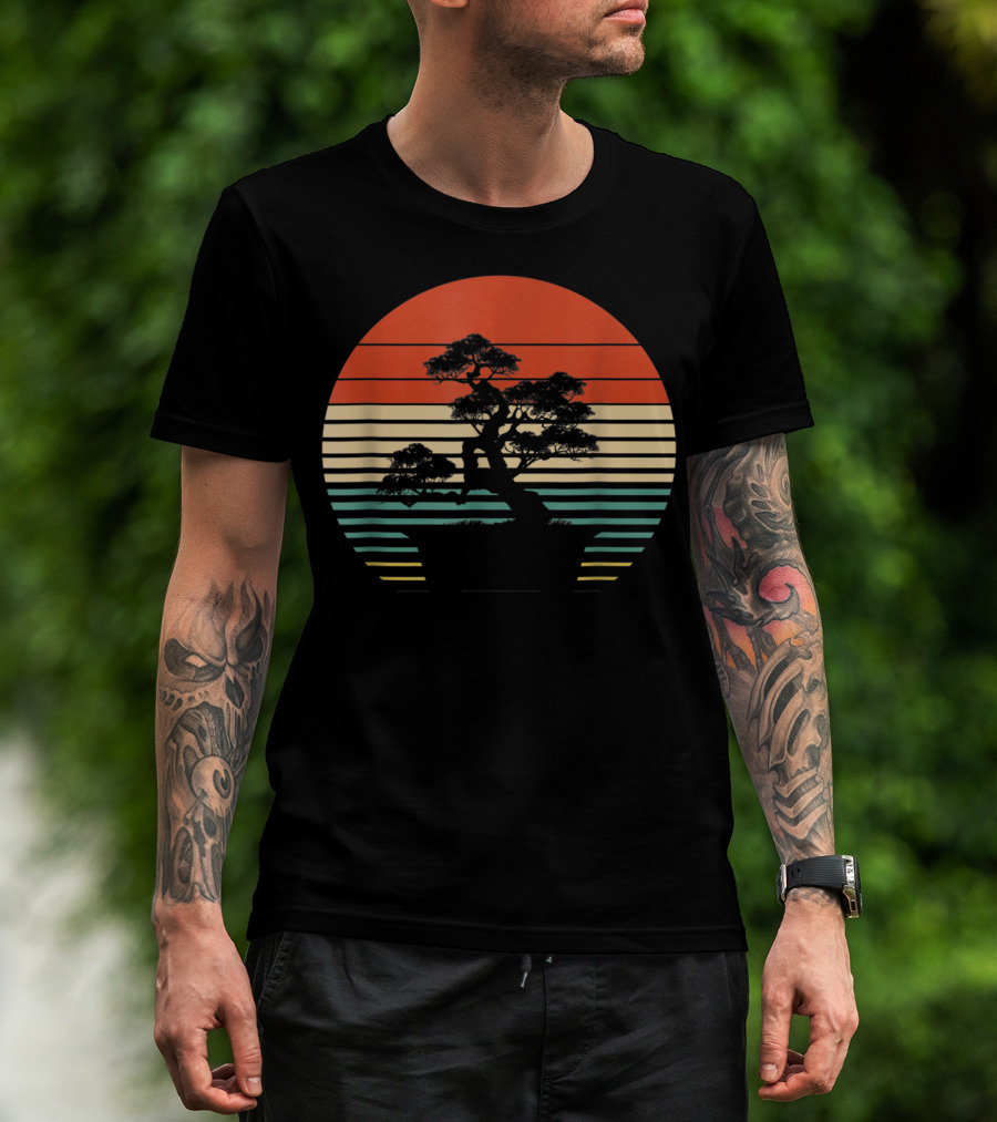 Bonsai Tree Japanese Retro Sunset T-Shirt