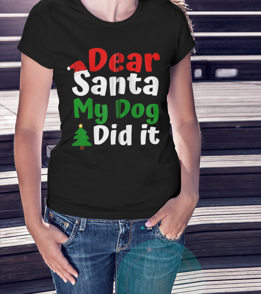 Dear Santa My Dog Did It Christmas Tree And Santa Hat T-Shirt