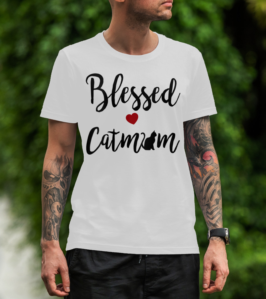Blessed Heart Cat Mom Cat Lover T-Shirt
