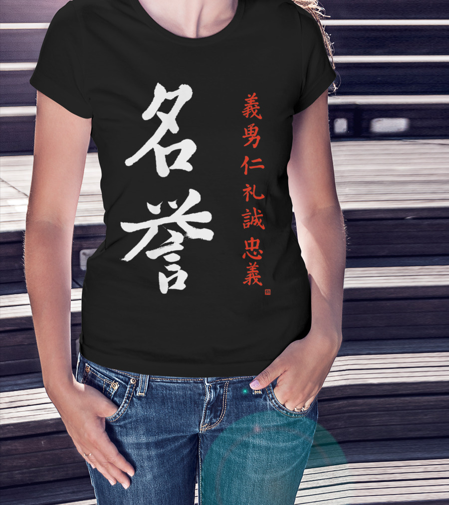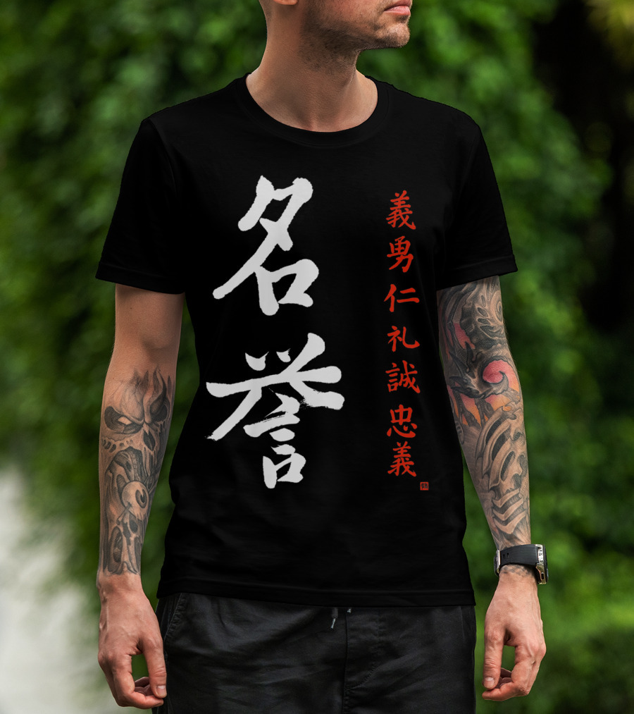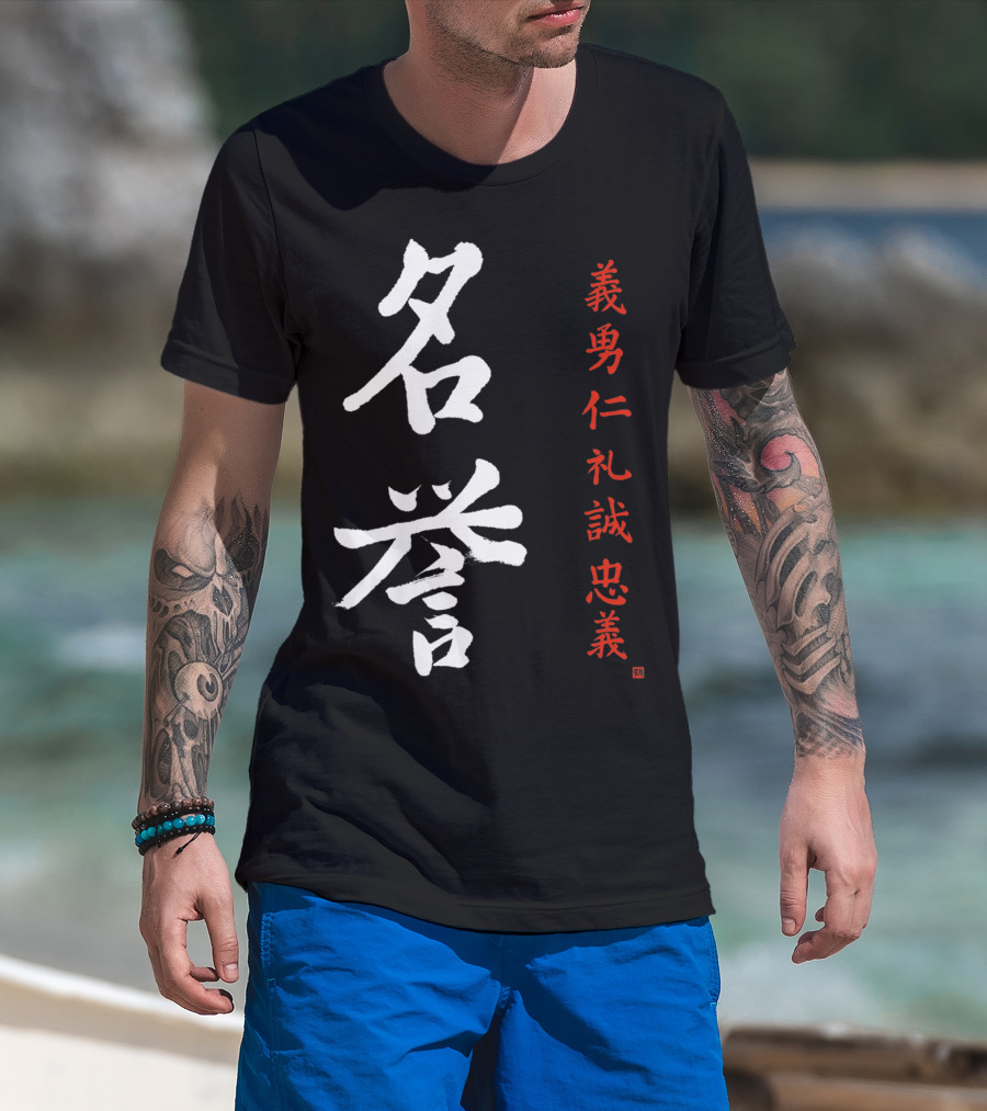 Bushido Code Honor Meiyo Kanji 義勇仁礼誠忠義 T-Shirt