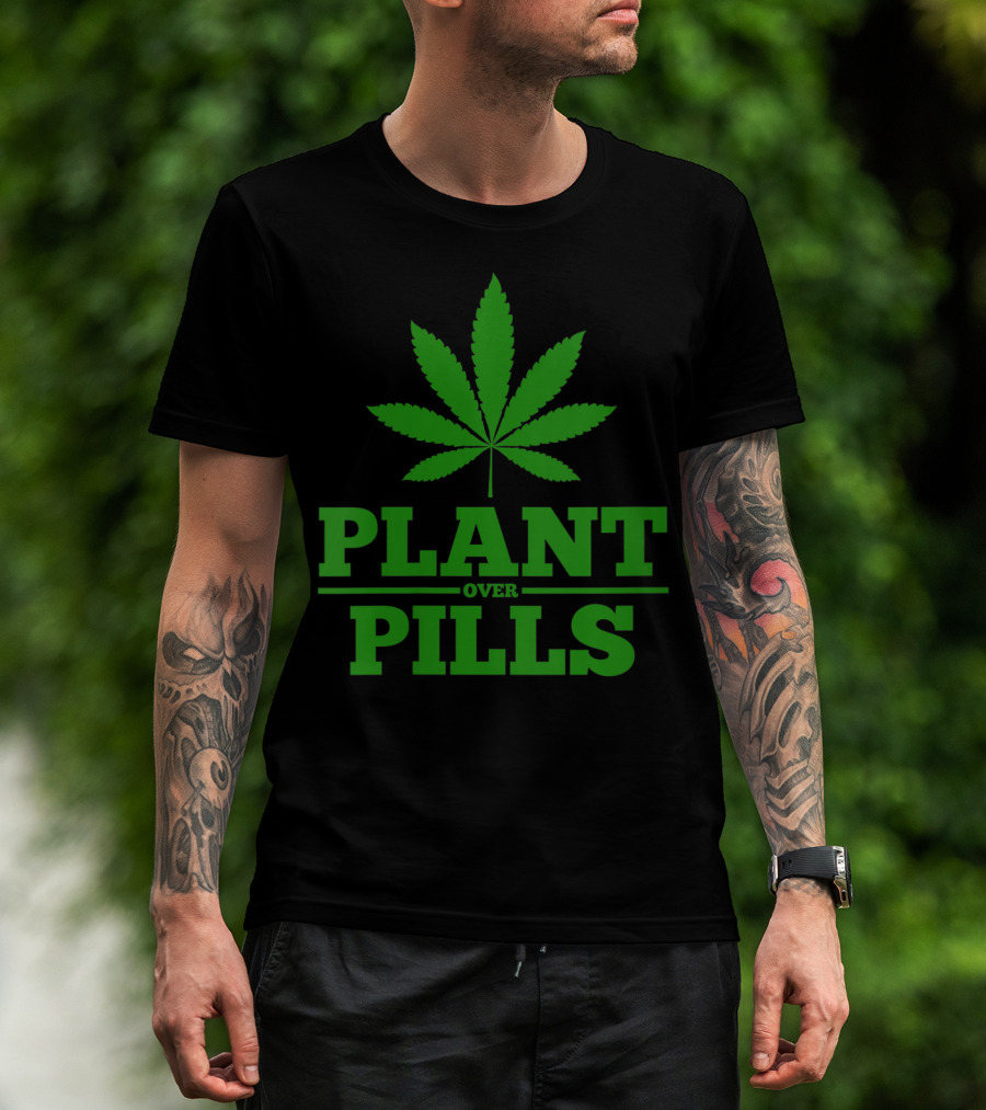 Funny Weed Smoker Plant Over Pills T-Shirt