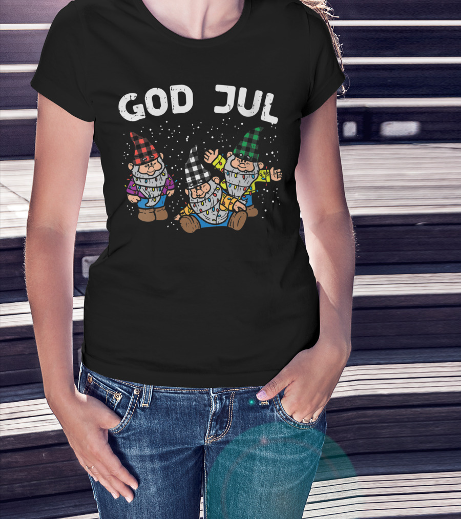 God Jul Buffalo Plaid Nordic Gnomes T-Shirt