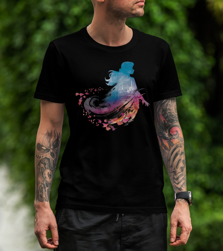 Disney Frozen 2 Anna Silhouette With Castle And Falling Leaves T-Shirt